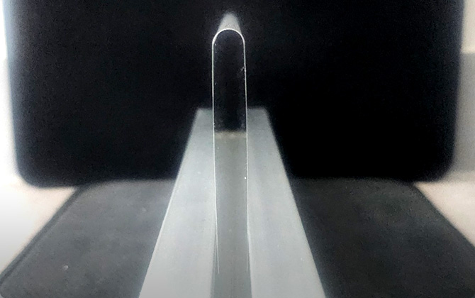 VTG (Variable Thin Glass)는 기존 폴더블 디스플레이 커버글라스로 사용되어지던 UTG(Ultra Thin Glass)의 단점인얇게 구현할수록 강도가 약해지면서 대면적화가 어렵고, 내구성 및 주름 문제로인한 신뢰성이 떨어지는 문제가 있다. 이를 보완하기위해 100㎛ 두께 이상의 글라스를 적용하여 폴더블 디스플레이 커버 글라스로 대체함으로써 보다 높은 신뢰성을 확보할수 있게 되었다.